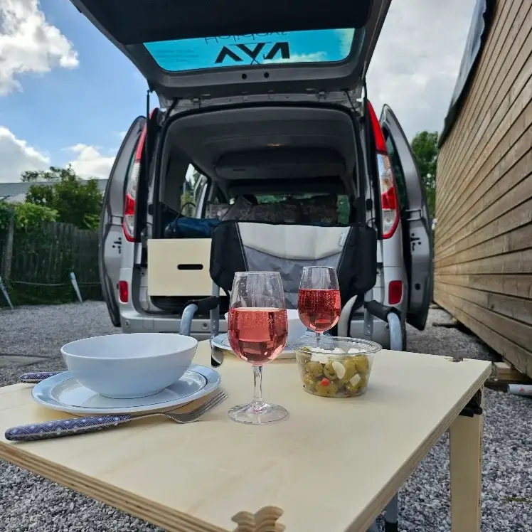 Permet d'aménager sa voiture en camping-car avec un meuble extensible en peuplier contreplaqué issu de forêts françaises gérées durablement.
